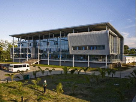 Project site: Papua New GuineaConstruction area: 35,000 square metersCompletion time: 2009There are three living areas - Madang base, mine and smelter. The living area in mine and smelter is ​​about 27,000 square meters, including the office building, canteen, residential building and other subitems, in which the residential building covers an area of ​​about 22,200 square meters (including five house types), and the remaining area is approximately 5000 square meters. Madang base covers an area of about 8000 square meters, including the Madang office building, Madang hotel, Madang canteen and other subitems. The Madang office building has three storeys, which adopts the three-dimensional composition principle for modeling, emphasizes the spatial organization and virtuality-reality relationship of building shape, and fully embodies the visual contrast between metal materials and glass curtain walls. The interior space is spacious and bright, creating a modern office environment, and the construction area is 3523 square meters. The graphic design of Madang canteen adopts the grid layout, which skillfully combines each different functional space in the 3.6 x 3.6 grid. The facade modeling fully considers the relationship with surrounding main buildings, and still uses the metal curved roof, glass curtain wall and other basic elements, forming unified and harmonious buildings with the surrounding environment, and the construction area is 726.9 square meters.