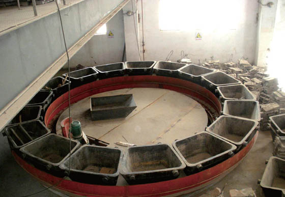 立志建造物品,由传输转配、园盘、锭模等组成部分,能将锻炼炉拉出的低温制冷的效果熔融粗铅浇永铸约2t/ 块的铅锭。 关键性经过历程传动链装配工艺出动圆球间接性位移,圆球周围上疏松按排势必数量的空模,在浇铸影响力上的空模秉持着锻炼炉连续进行排放的铅液,浇铸到设置液面线后辅助装备启用,把下一空模位移至浇铸影响力,顺次停掉。当水冷却缓凝的铅锭位移到吊装作业位时,吊出并转化运至铅锭放置地。空模均点涂脱膜剂,然后遗憾下做次浇铸铅液。 内径要求:6.7m,7.8m,9.0m。 取胜使用于还有国内各地德里巴、江西恒邦、四川贵阳市银星、赤峰山金等名头。